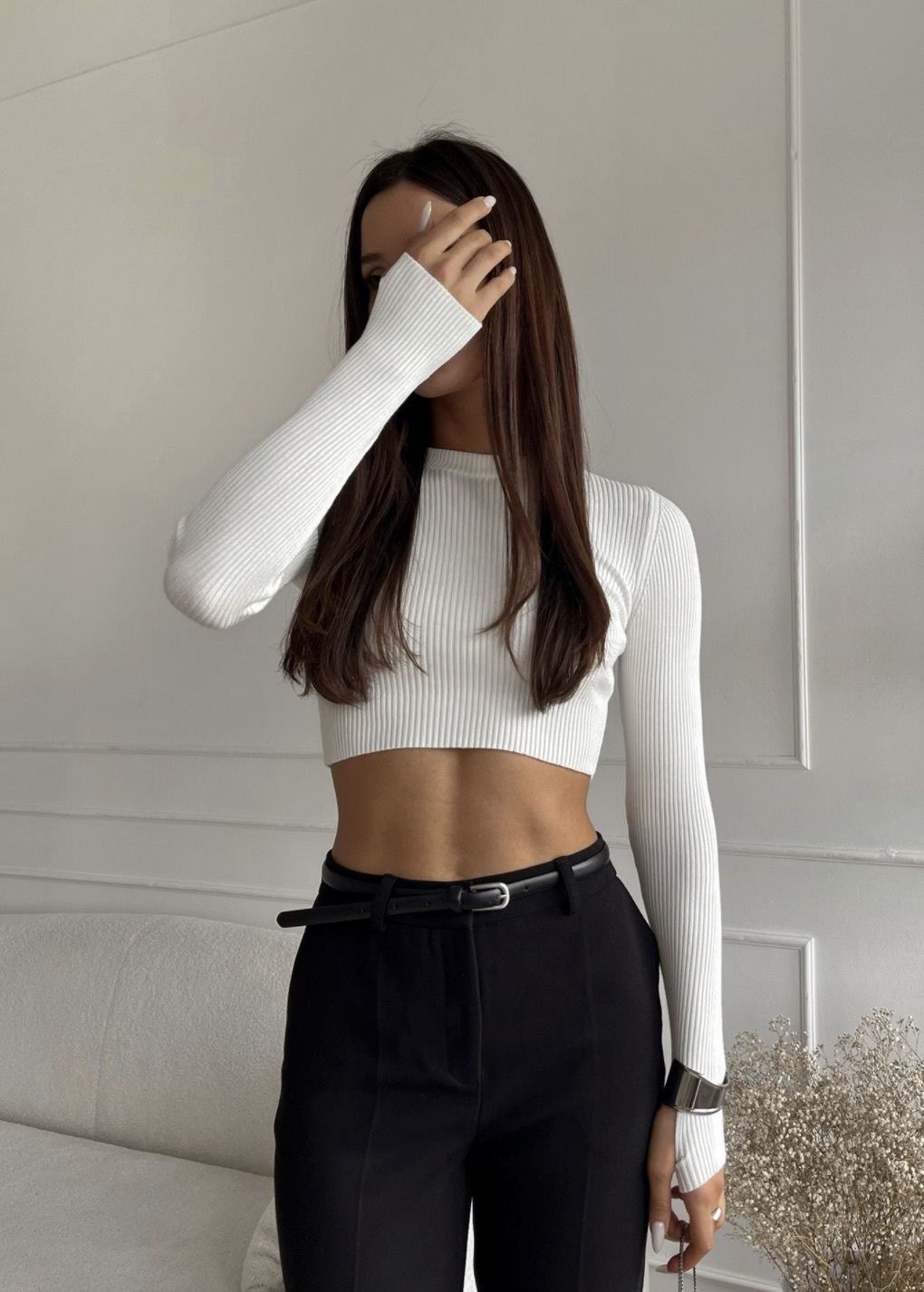 Кроп-топ в рубчик из мягчайшей итальянской вискозы с вырезом для большого пальца.