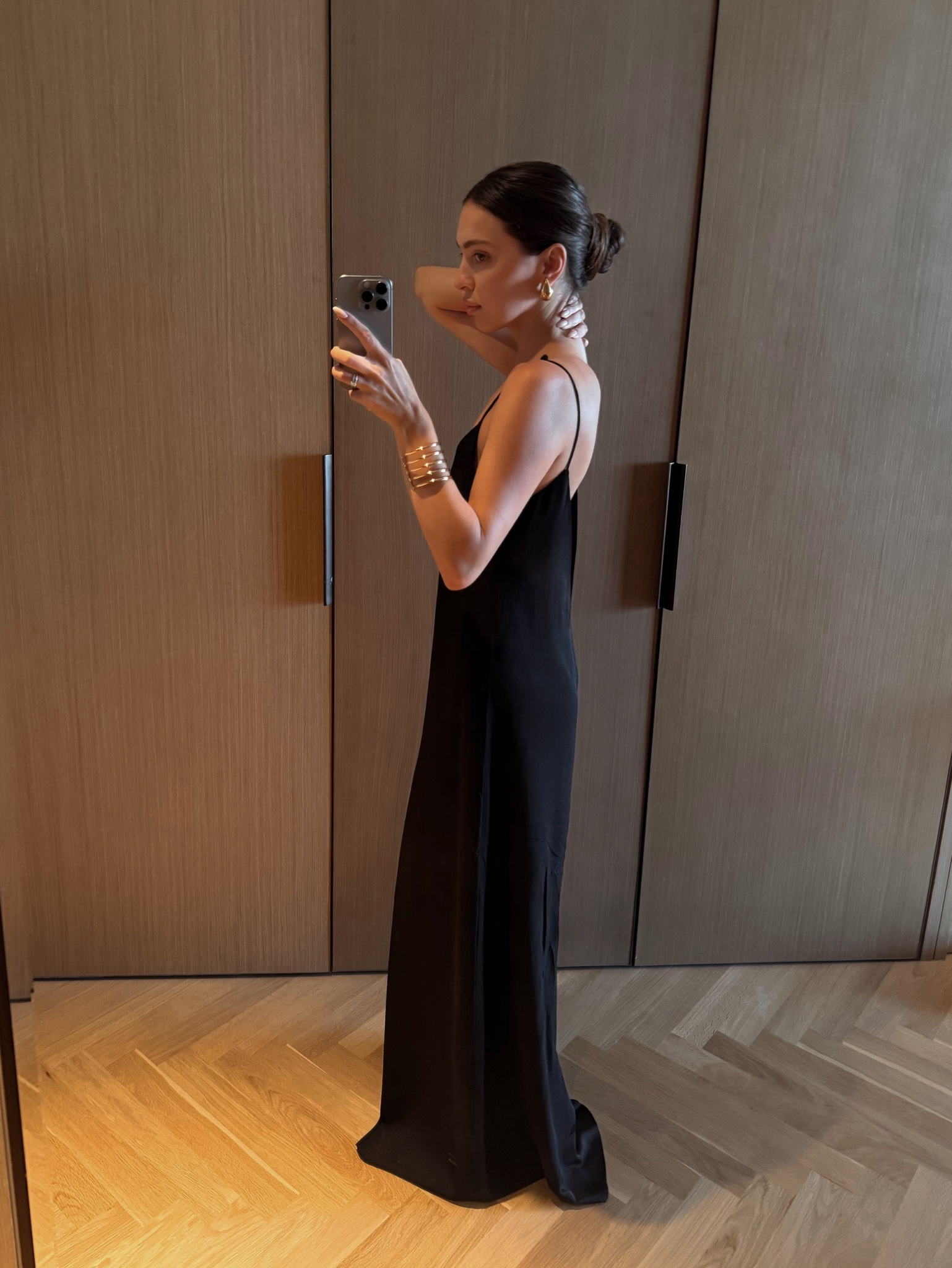 Свободный силуэт, тонкие бретели и глубокий вырез на спине — всё в нём говорит о беззаботных прогулках у моря, утреннем кофе с видом на волны и лёгкости каждого движения.