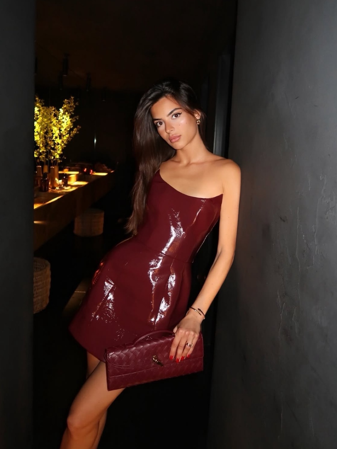 Смелое мини-платье 'Mrs. Smith' в элегантном винном цвете. Приталенный фасон подчеркивает фигуру, а открытые плечи и лаконичный корсетный крой добавляют образу утонченности. Выполнено из эко-кожи с лаковым покрытием, дополнено шелковым подкладом.